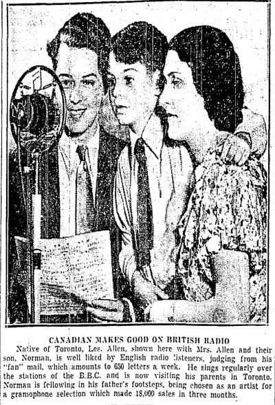 Strictly speaking, Les Allen (1902-1996), with "Les" being short for "Leslie", was a native of Britain, as he was born in London. His family moved to Canada when he was three, though, so close enough. Allen grew up in Toronto and became a musician there before moving to England in 1924.