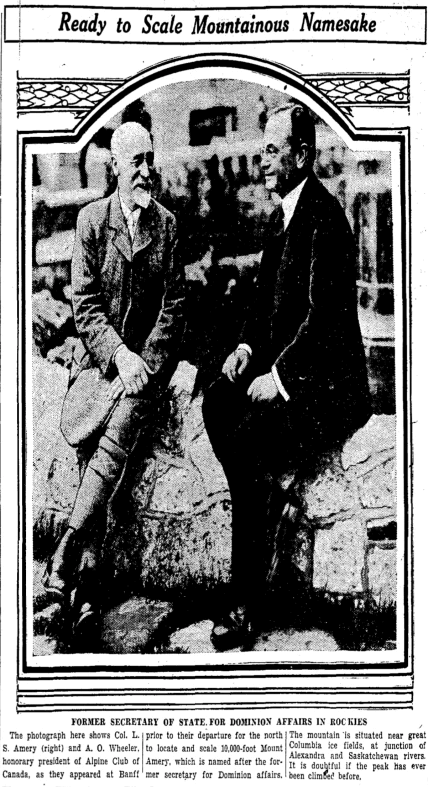 Mount Amery is a 3,329 metre peak located in the Canadian Rockies. Leo Amery, who was an enthusiastic climber, was part of a party of three who, indeed, became the first to climb it.