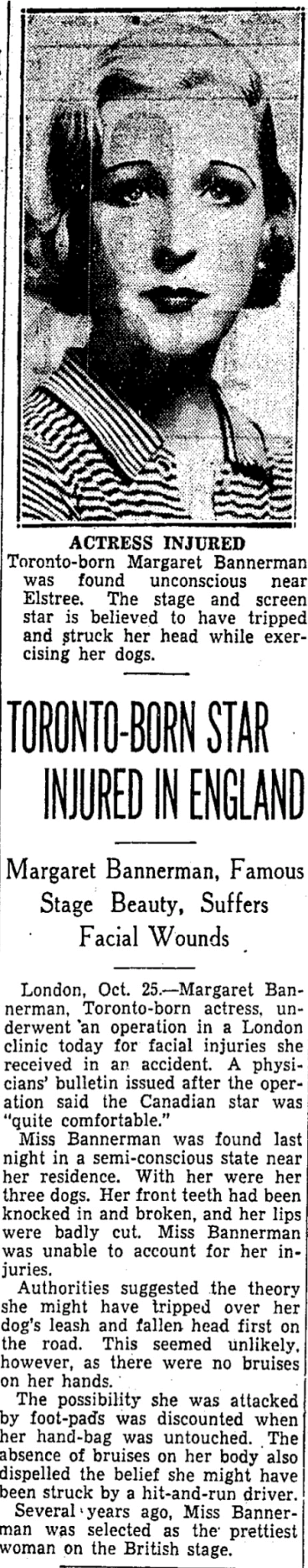 Canadian-born Margaret Bannerman (1896-1976) appeared in silent films in Britain between 1917 and 1920. She moved to the United States in the 1930s and appeared in movies until 1947. She eventually retired to an actors' home in Englewood, New Jersey.
