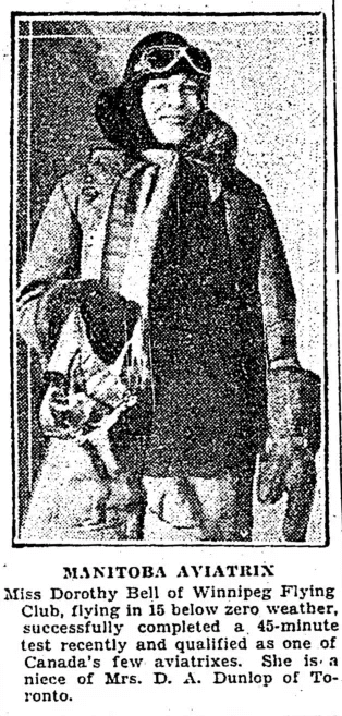 Dorothy Bell (1900-1987) became the second woman from Manitoba and the fourth woman from Canada to become a pilot. She married John Burdette Richardson later in 1929; he passed away in 1954.