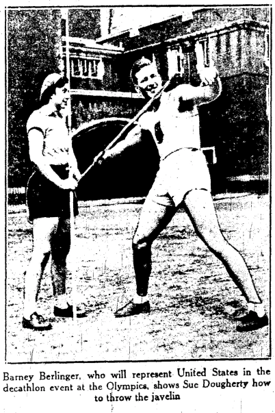 Barney Berlinger (1908-2002) wound up not competing at the 1932 Los Angeles Olympics, as he was recovering from a sore back and was just starting a new job. He compensated by defeating the Olympic decathlon winner, Jim Bausch, in a seven-event competition at Madison Square Garden.