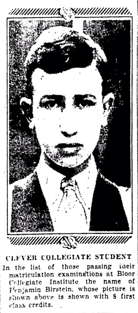 Young Mr. Bierstein's name was unique enough that it was possible to trace him in the Toronto city directories. He first appears in 1930 as a student, and eventually became an accountant, starting a firm with Morris Birstein, who was presumably his brother or his father.