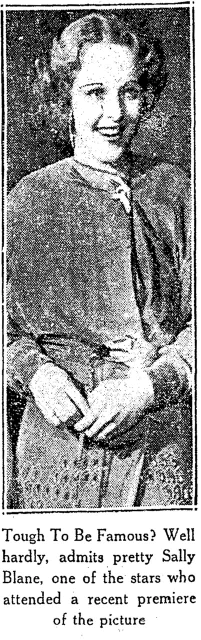Sally Blane (1910-1997) appeared in over 100 movies, almost all of which were before 1939. She was part of a family of actors: her sisters, Loretta Young and Polly Ann Young, and her half-sister Georgiana Young all had careers in the movies (though Georgiana's was brief).