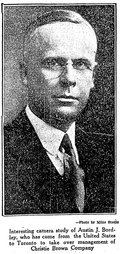 Mr. Bordley's address was not included in this photograph. However, the Toronto city directories soon ferreted that out: Mr. Bordley does not appear in the 1930 directory, but he does appear in the 1931 through 1933 directories, and is listed as living in an apartment at 1 Clarendon Avenue. He didn't stay in Toronto all that long, though - he's not in the 1934 directory. Perhaps he had done what he had come to do.