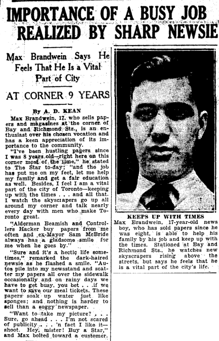 Out of curiosity, I traced Max Brandwein in the Toronto city directories. He wasn't listed in the 1931 directory, but I did find him later. At roughly five-year intervals: