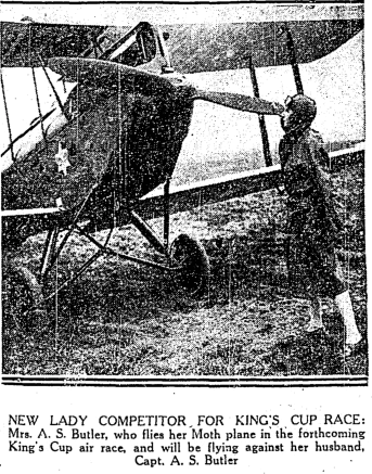 As it turned out, neither Mrs. Butler nor Mr. Butler won the King's Cup in 1929. The winner was R. L. R. Atcherley, who went on to become Air Marshal Sir Richard Llewellyn Roger Atcherley.