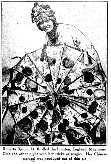 Roberta Byron had been performing professionally since at least 1929, when she was billed as the Youngest Magician In The World at a convention in Lima, Ohio. She stopped performing sometime in the early 1940s.