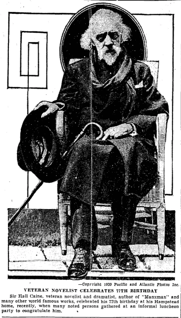 Hall Caine (1853-1931) was wildly successful in his time, selling over ten million copies of his books and writing plays that were performed in London's West End and on Broadway. He was so popular that crowds would gather outside of his house. During the First World War, he dedicated himself to the British war effort; for his service, he was knighted in 1919.