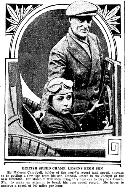 Donald Campbell (1921-1967) followed in his father's footsteps, breaking both land and water speed records. Unfortunately, he passed away during an attempt to set the water speed record yet again. His body was not found until 2001. His teddy bear, Mr. Whoppit, has a Wikipedia page of his own.