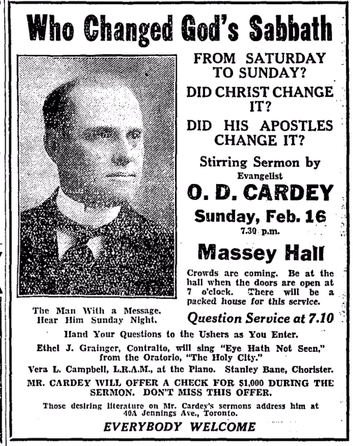 O.D. Cardey did not stay in Toronto long. He was listed in the 1931 city directory (as "O.D. Cardy"), but was not listed in 1932.