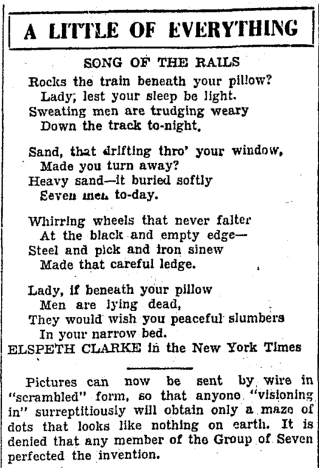 The Toronto Daily Star used to include a column on its editorial page titled "A Little Of Everything". It always started off with a poem and then included what presumably were editorial comments. Here's the start of one such column:
