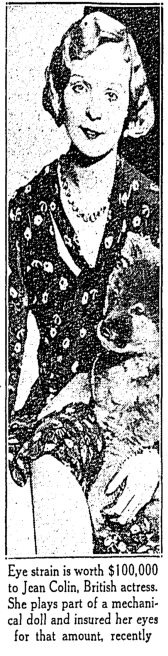 Jean Colin (1905-1987) started her stage career in Britain in 1923. She occasionally appeared in movies between 1930 and 1953 but mostly remained on the stage.
