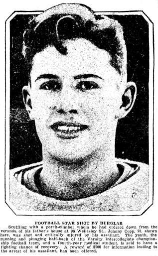 The December 1 1933 edition of the Toronto Daily Star contained this photograph of a young man who had been shot by a burglar.