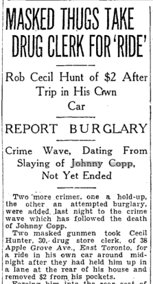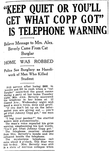 According to the Daily Star, Mr. Copp's death led to a crime wave in the city. Here's the start of an article from the December 20 edition: