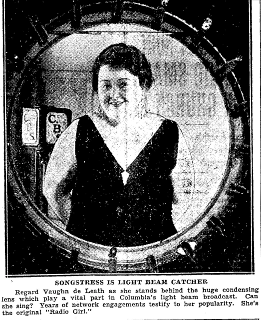 Vaughn de Leath (1894-1943) was known as "The Original Radio Girl", and the "First Lady of Radio", a designation she was attached to: when Kate Smith tried calling herself the "First Lady of Radio", she sued.