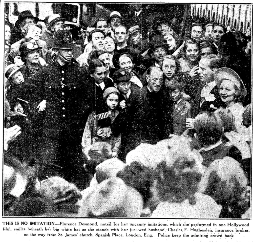 Florence Desmond (1905-1993) started her stage career at the age of 10. In 1928, she toured North America as part of the cast of This Year of Grace. She then developed an act in which she impersonated famous celebrities. A recording of her impersonations became a best-seller. She retired from the stage in 1954.