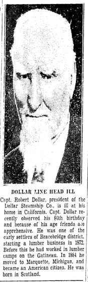 Robert Dollar (1844-1932), who had the perfect surname for a wealthy industrialist, managed to hold out for two more years after the illness reported here. Dollar was born in Scotland (so perhaps his surname should have been Pound?) and his family moved to Canada when he was in his early teens.