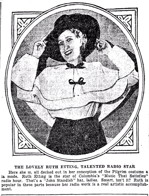 Ruth Etting (1897-1978) was a singer and actress, popular in the 1920s and 1930s. She did not have an easy life. Her manager was her husband, Moe Snyder, who was aggressive and controlling; she divorced him in 1937, surrendering half her career earnings to him as a result.