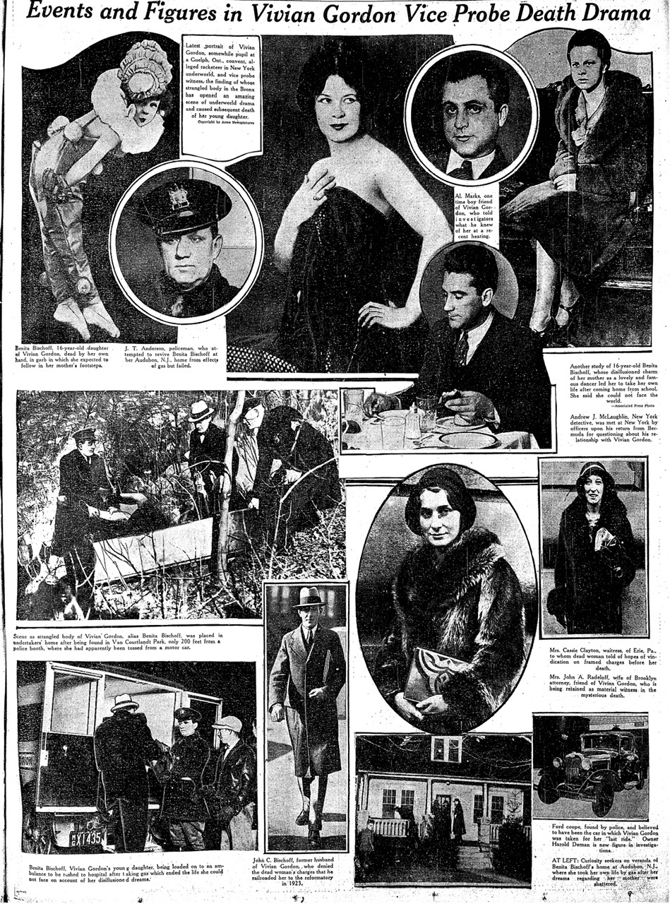 The entire photo page of the March 5 1931 edition of the Toronto Daily Star consisted of photographs of the murder of Vivian Gordon, a woman who was apparently well-connected to New York's underworld.
