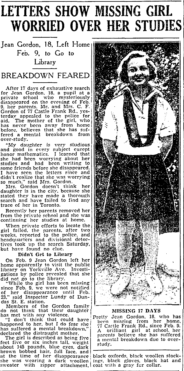 Here's an article from the front page of the February 26 1935 edition of the Toronto Daily Star that is sad and confusing.