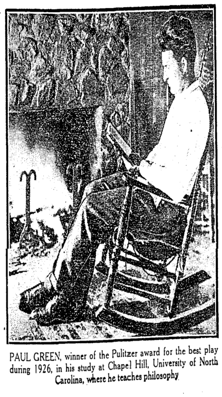 Paul Green (1894-1981) won the Pulitzer Prize for In Abraham's Bosom, which ran for 200 performances on Broadway between December 1926 and June 1927.