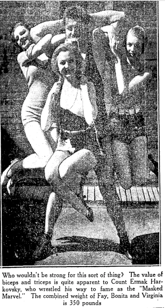 A search for Count Ermak Harkovsky turned up a few mentions of wrestling matches from the early 1930s that featured him. This wrestling discussion board contains references to him: apparently, he was from Russia, wrestled in Europe until 1928, and then spent a year learning American-style wrestling before entering competitions on this side of the pond. I couldn't find any references to him that were later than 1933.