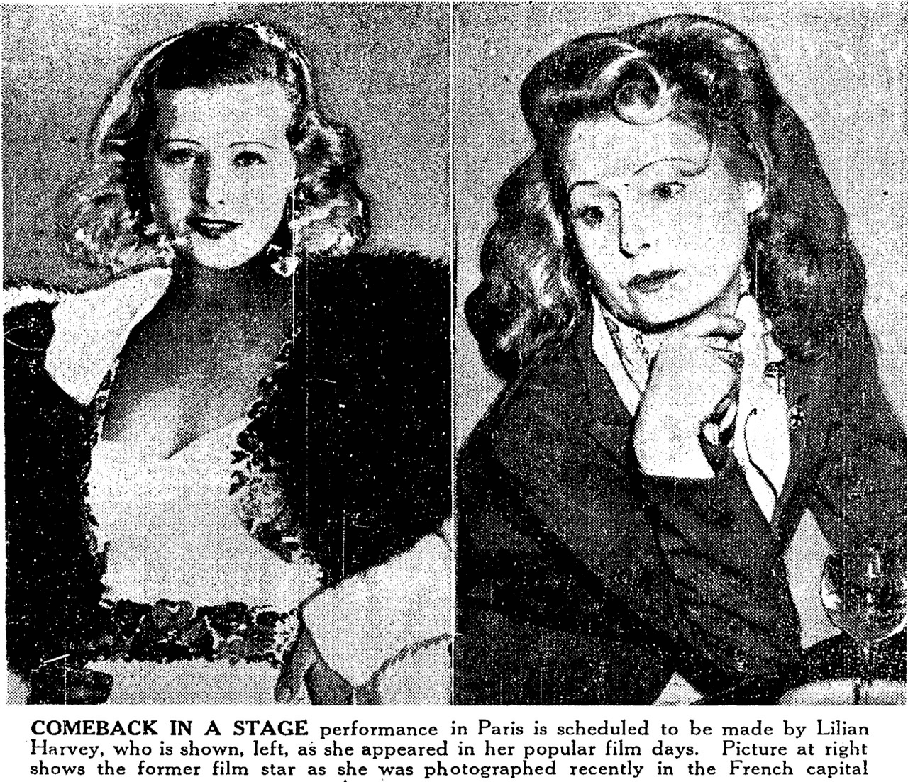 The story of Lilian Harvey (1906-1968) turns out to be quite interesting and a little sad. Daughter of a German father and an English mother, Ms. Harvey began her career in Berlin, and starred in a number of silent and talking films in Germany in the 1920s and 1930s. Because she had Jewish and gay colleagues, she was watched closely by the Gestapo; she eventually fled Germany in 1939, leaving behind a fortune in real estate, which was confiscated. She moved to Vichy France, but fled to the U.S. in 1942 when the Germans overran France.