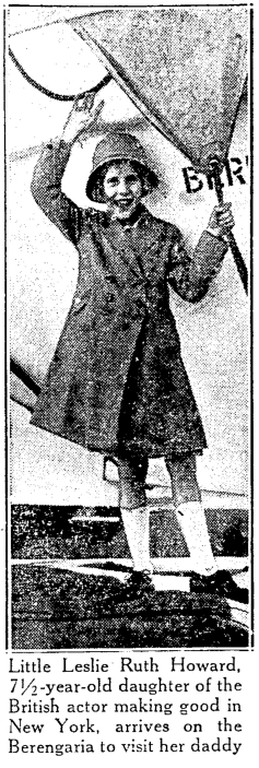 Little Leslie Ruth Howard's father was Leslie Howard (1893-1943), a British actor who was a major star in the 1930s. After appearing in Gone With The Wind in 1939, he returned to Britain to help produce anti-German propaganda and provide support for the Allies. On June 1 1943, he was on a BOAC plane flying from Lisbon to Bristol that was shot down. Reports differ on whether Howard, who was considered a propaganda asset, was targeted; a recent book claimed that the Germans did not know who was on the aircraft and that shooting down the aircraft was simply an error in judgement.
