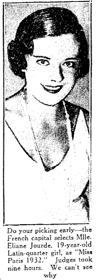 A search turned up a number of photographs of the newly crowned Miss Paris 1932, including photos on Wikimedia Commons and eBay. I could find nothing on Ms. Jourde after that.