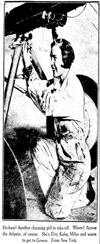 She returned to Estonia in 1926 and then moved to Paris, where she studied oil painting and remarried. In the late 1920s, she met Dutch aviator Anthony Fokker and asked him to teach her to fly. In 1932, she planned on becoming the first woman to fly across the Atlantic Ocean, but then met and befriended Amelia Earhart, who was about to achieve this herself. Instead, she and a co-pilot planned a flight from Los Angeles to Athens, captioned in the photograph above, to commemorate the 1932 Los Angeles Olympic Games. This flight was later cancelled.