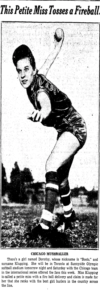 The "World of Early Amateur & Youth Sports in Chicago" website has a detailed entry on Dorothy "Boots" Klupping (1918-1993). She went on to play in the All-American Girls Professional Baseball League in 1944. Later, she became a teacher and a dog breeder.