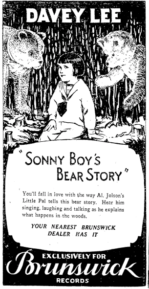 Davey Lee (1924-2008) was a child actor who appeared as Sonny Boy in The Singing Fool (1928), Al Jolson's followup to The Jazz Singer. This movie was a huge hit, becoming the most financially successful film in movie history until Snow White and the Seven Dwarfs passed it in 1937. Jolson's recording of "Sonny Boy" became the first million-selling record in the United States.