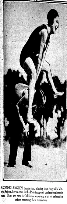 Suzanne Lenglen (1899-1938) was the best women's tennis player of the early 1920s. She was only defeated once in a singles match after the First World War, compiling a 179-match win streak at one point. In 1926, after a dispute at Wimbledon, she turned professional, earning over $100,000 in a tour that lasted through 1927.