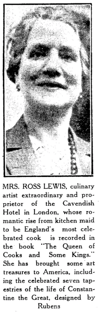 Rosa Lewis (1867-1952), known as "The Queen of Cooks", started her working life as a domestic servant at the age of 12. She went on from there to become a cook. One of her employers was Lady Randolph Churchill, mother of Winston Churchill. She later met King Edward VII and was rumored to have had an affair with him. She purchased the Cavendish Hotel in 1902, possibly with his help.