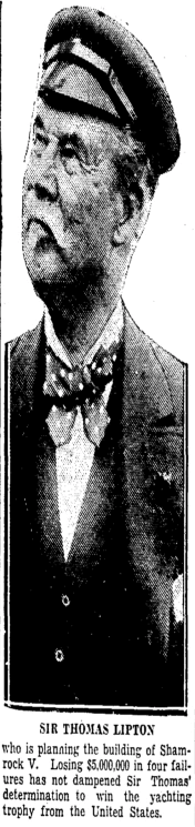 Five million dollars in 1926 is roughly equivalent to $89 million today, but Thomas Lipton (1848-1931) could afford it: he had made a fortune selling Lipton's tea. His fifth and final attempt to capture the America's Cup trophy took place in 1930 and also resulted in failure. As a consolation, he received a specially designed cup for "the best of all losers", which he might or might not have appreciated.