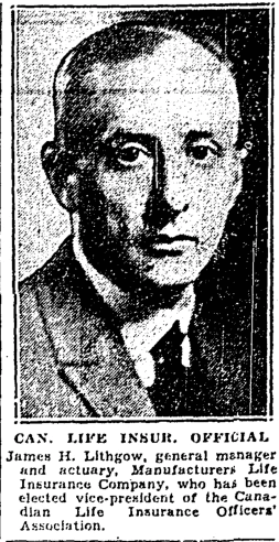 I looked James H. Lithgow up in the Toronto city directories. In the 1931 directory, he is listed as an assistant general manager at Manufacturers Life, living at 264 Oriole Parkway. In later editions of the city directories, he is easy to find, as his entry is in bold face; he eventually became the Chairman of the Board.