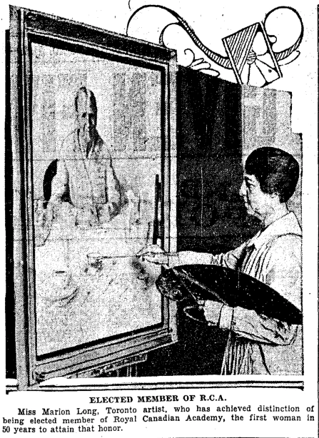 Marion Long (1882-1970) was the second Canadian woman ever to be elected a member of the Royal Canadian Academy; the first, Charlotte Schreiber, was elected in 1880 (though she was not permitted to attend meetings or influence policies). Ms. Long was often commissioned to paint portraits; she was asked to paint portraits of the Royal Norwegian Air Force during the Second World War and was honoured with the King Haakon VII Medal of Liberation as a result.