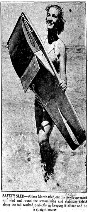 Sometimes, a photograph like this is of a movie actress. But I couldn't find Althea Martin in the Internet Movie Database or anywhere on the Internet. So I guess she was just a random young woman trying out a sled and who is now lost to history.