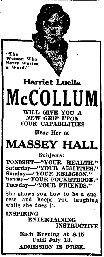 Harriet Luella McCollum (1874-1948) was noteworthy for using her maiden name despite being married with two children, which was unusual for the time. She was the author of a number of books, which were apparently part of a series. Some of the books were: