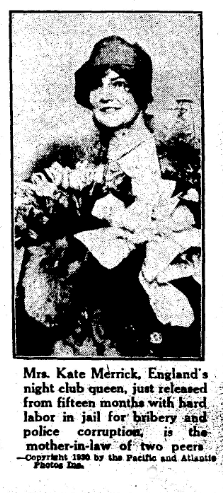 Kate Meyrick (1875-1933) started her career as a nightclub owner in 1920 after separating from her husband and being left with one pound a week to support her eight children. Prior to being sentenced in 1929, she had served prison sentences in 1924 and 1927.