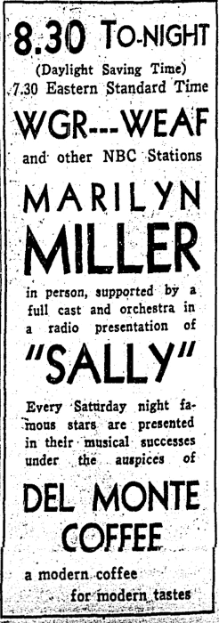 A movie version of Sally was released in 1929, featuring Ms. Miller in the starring role. YouTube has several clips of her and of this movie, including this sequence that is partly in black and white and partly in colour.