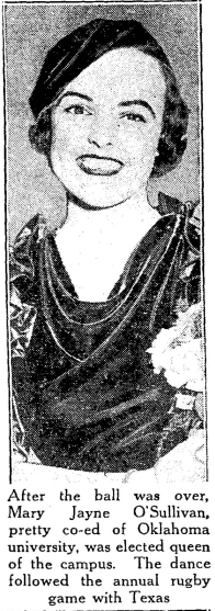 A search turned up an obituary for Mary Jayne Ramsey, nee O'Sullivan; Ms. Ramsey was born in about 1912, so the date matches with this photograph. She was married in 1935; by the time she passed away in 2005, she had three children, nine grandchildren, and 14 great-grandchildren.