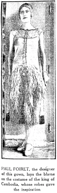 Paul Poiret (1879-1944) was a leading French fashion designer before the First World War. During the 1920s, fashions trended towards simpler designs, which caused Poiret to fall from prominence, as his costumes were elaborate and often poorly constructed. In 1929, his fashion house was closed; after this, he declined into poverty. His friend, designer Elsa Schiaparelli, paid for his funeral.