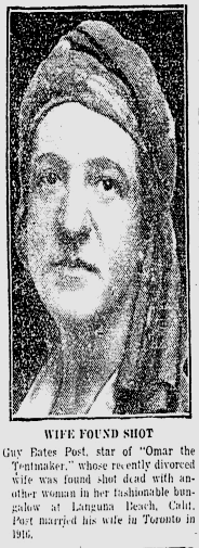 Post was married four times, but it was his third wife, Adele Ritchie, who was mentioned here. The two were married in Toronto in 1916 and were separated for nearly three years before divorcing in 1929. After the divorce, Ms. Ritchie became director of the Community Players theatre group in Laguna Beach, California, where she met and befriended Doris Miller, a set designer nearly 23 years younger.