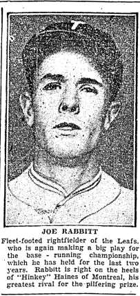 This edition of the Toronto Daily Star had a brief article about a member of the Toronto Maple Leafs baseball team who was battling for the International League lead in stolen bases. Appropriately enough, his name was Joe Rabbitt: