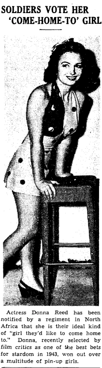 The film critics who selected Donna Reed (1921-1986) for stardom were prescient: she went on to appear as James Stewart's wife in the 1946 film It's A Wonderful Life, and won an Oscar for Best Supporting Actress in From Here To Eternity in 1953. She then became a TV star, appearing on The Donna Reed Show from 1958 to 1966.