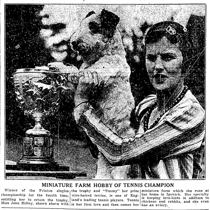 Joan Ridley (1903-1983) had her best result in 1931, when she was a finalist at Wimbledon in mixed doubles. She got married in 1935, and appears to have ended her tennis career at about that time.