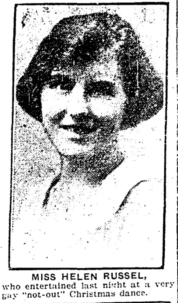 Needless to say, some of the text in this caption would have a different meaning today. I am assuming that the phrase "not-out" meant that Miss Russel had not made her official debut in society.