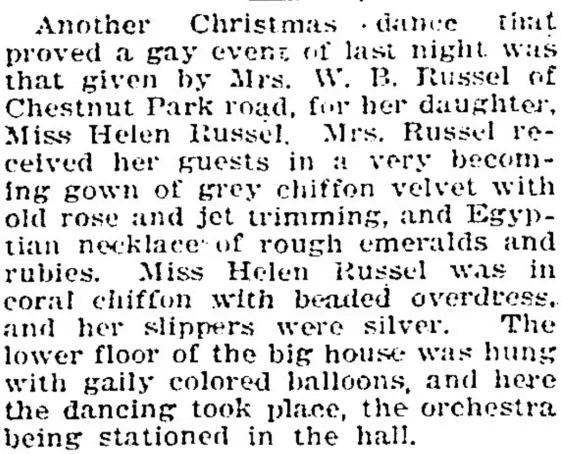 - The 1927 directory lists William B. Russell as the president of Federal Gold and Copper Mines and living at 16 Chestnut Park.