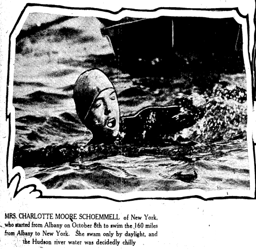 - Her entry in the Openwaterpedia website, which mentions that she swam the 251 kilometres down the Hudson River over 11 days, eating lumps of sugar soaked in whiskey for energy. In 1926, she also swam around Manhattan Island.